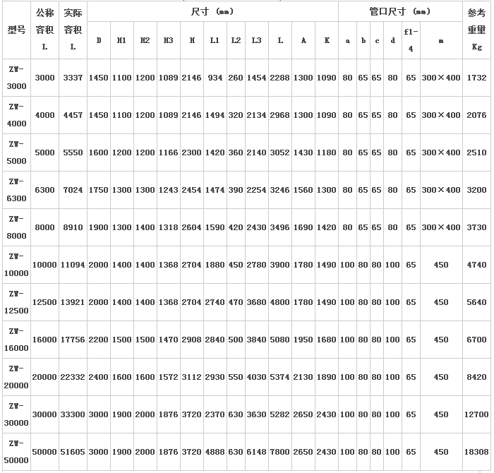6.ZW系列儲罐主體尺寸符臺HG/ T2371-92. GB:T 25027-2010標準,并在此基礎上進行了改進。